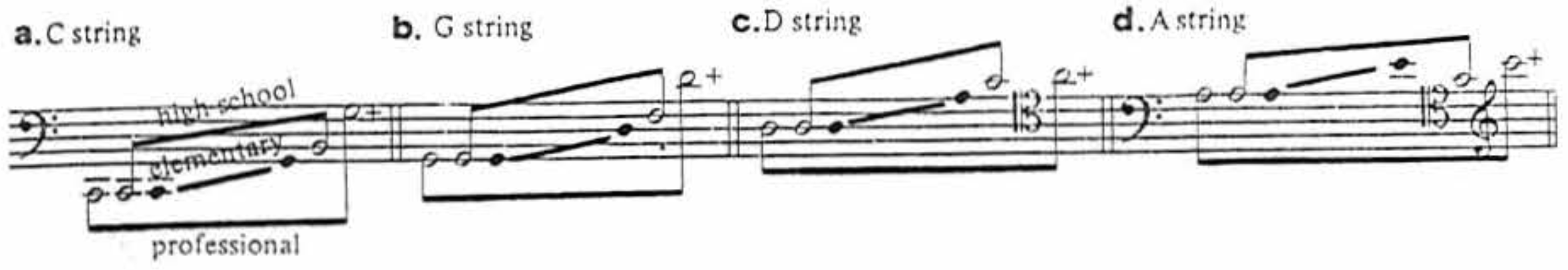 Viola range, by string (Blatter, 56)
