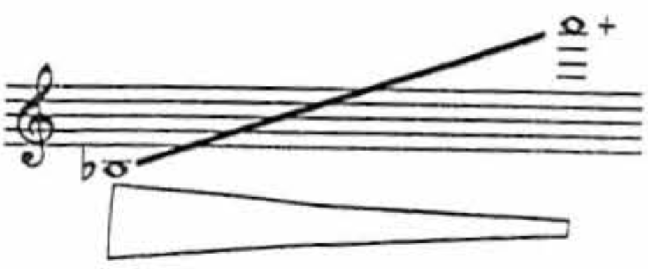 Oboe dyanmic curve: loudness decreases across register (Blatter, 100).